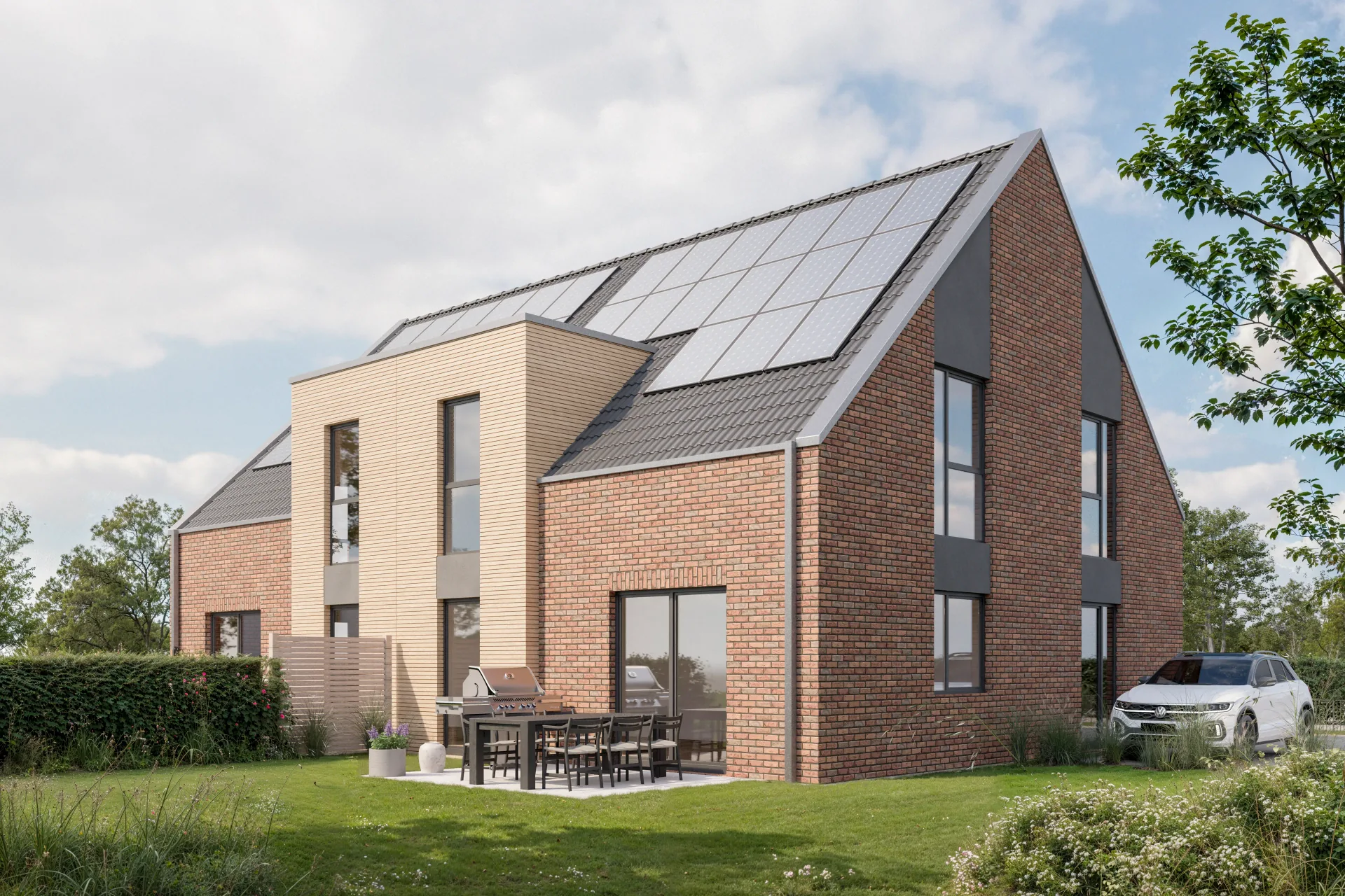 Doppelhaus – Außenvisualisierungen zur Vermarktung.